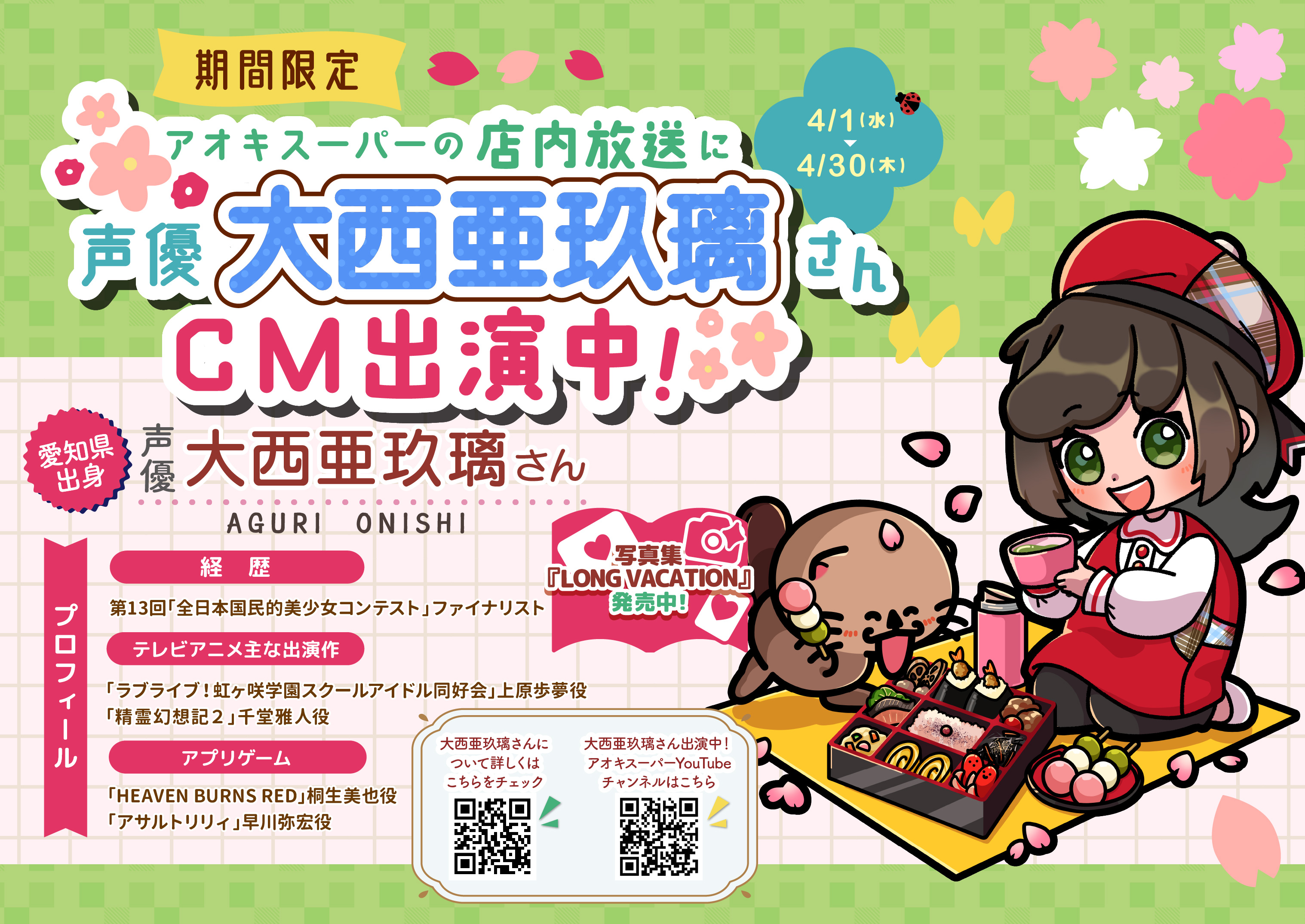 愛知県出身の声優『大西亜玖璃さん』が期間限定で店内放送CMにご出演!